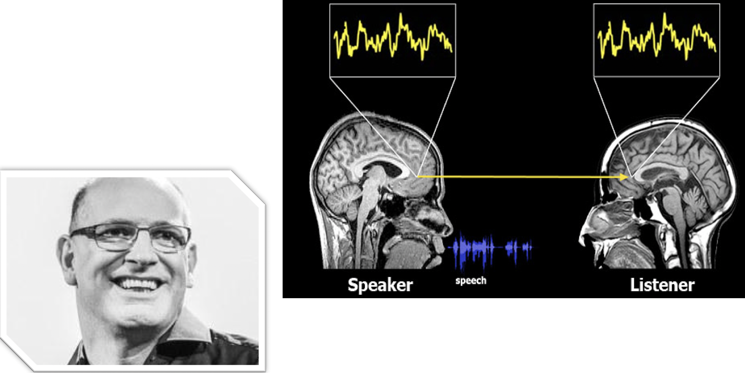 In this study, volunteers listened to a 15-minute audio recording of an emotional story of high school prom while their brains were imaged by fMRI. Next, listeners took a test on story comprehension and recall ability. After the listeners’ fMRI data was mapped to the storyteller’s own fMRI, those listeners who scored highest on story comprehension also showed the closest neural coupling to the speaker. Top listeners synchronize with the speaker and even anticipate thoughtsThis implies that people understand each other by mirroring each other’s brain responses